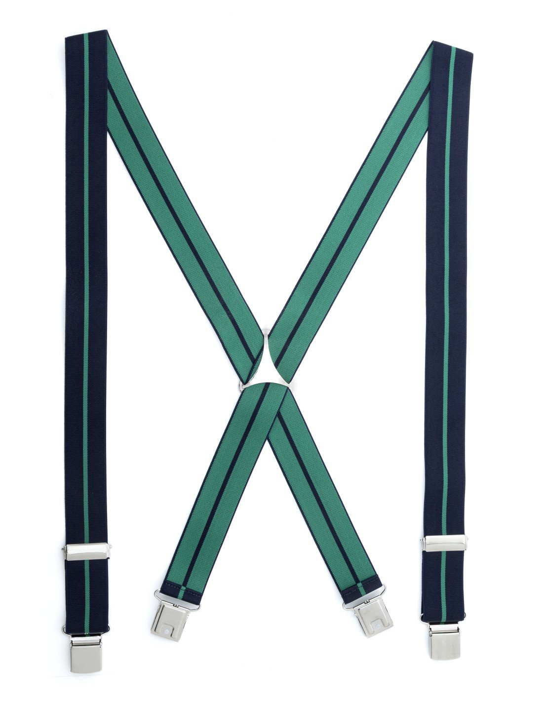 Tirantes de hombre elásticos con fondo negro y raya vertical en color verde
